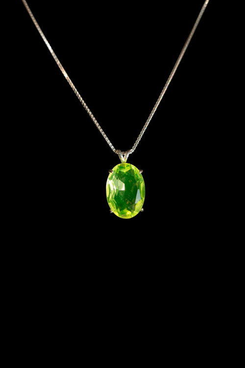Uranium Glass Cabochon Necklace — Hand-Assembled Glow Pendant